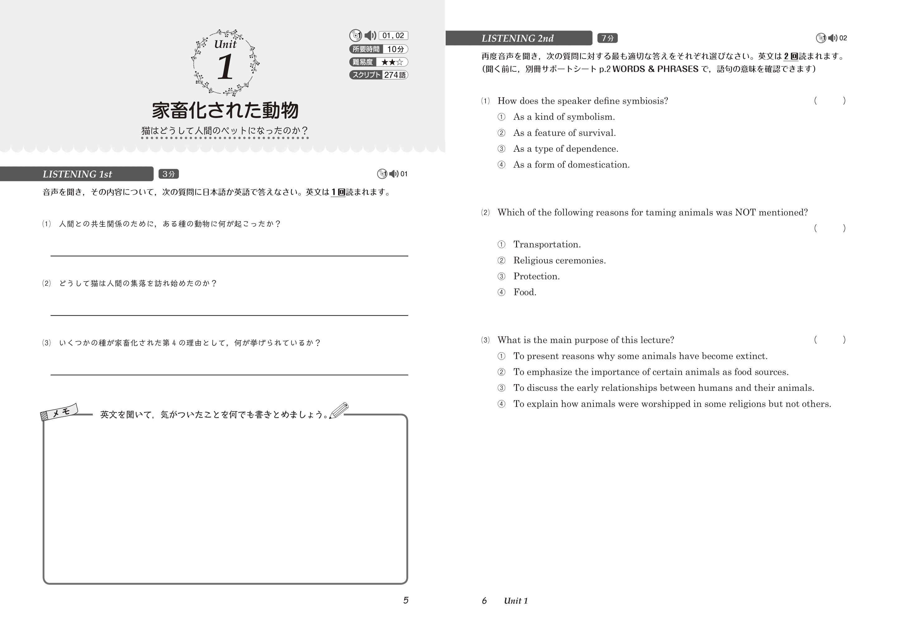 ●同じ音声を、設問を変えて繰り返し聞く。