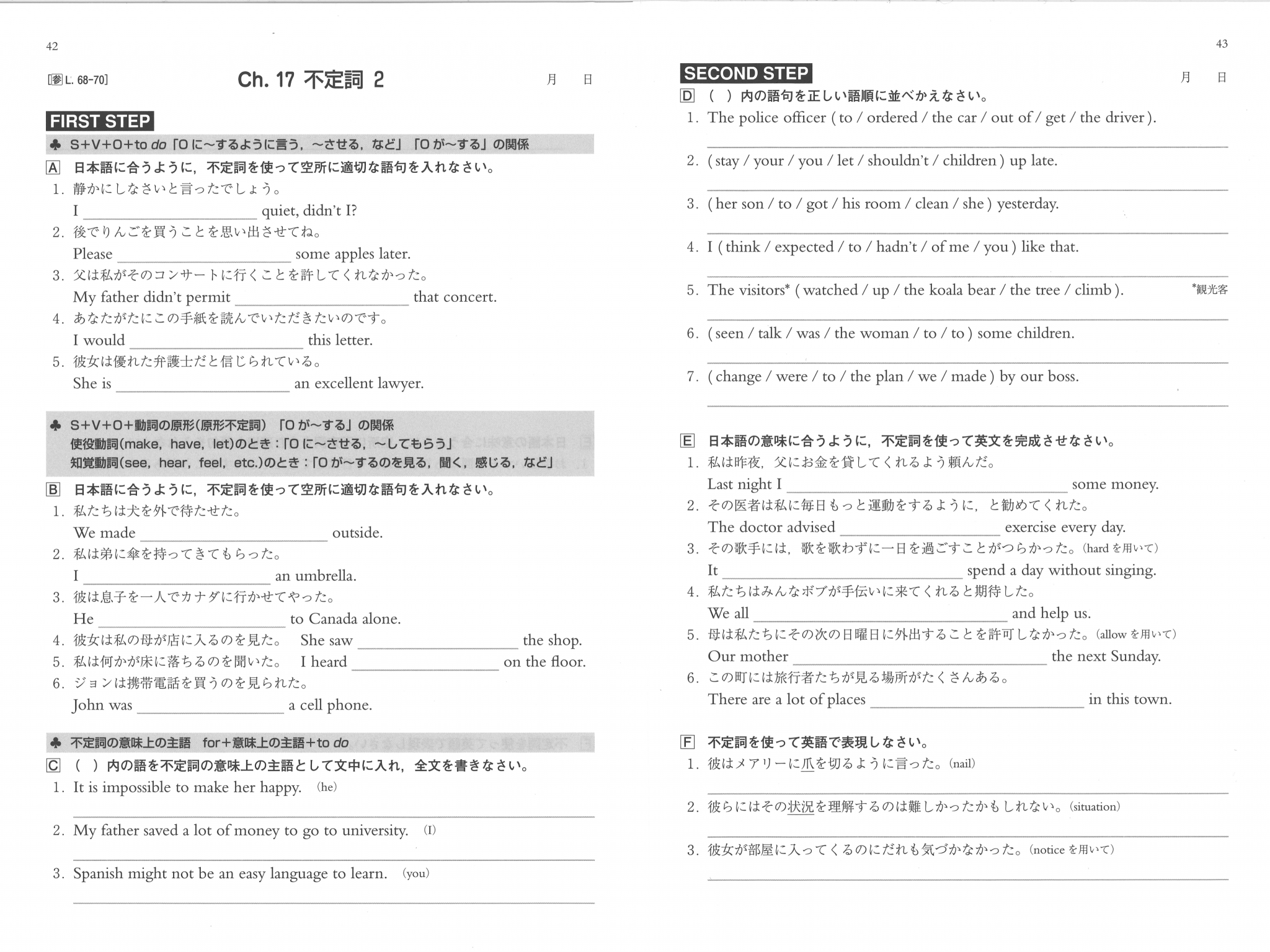 - FIRST STEPとSECOND STEPの2段構成。SECOND STEPではその章で学んだことが順不同で出題されるので理解度が試せます。