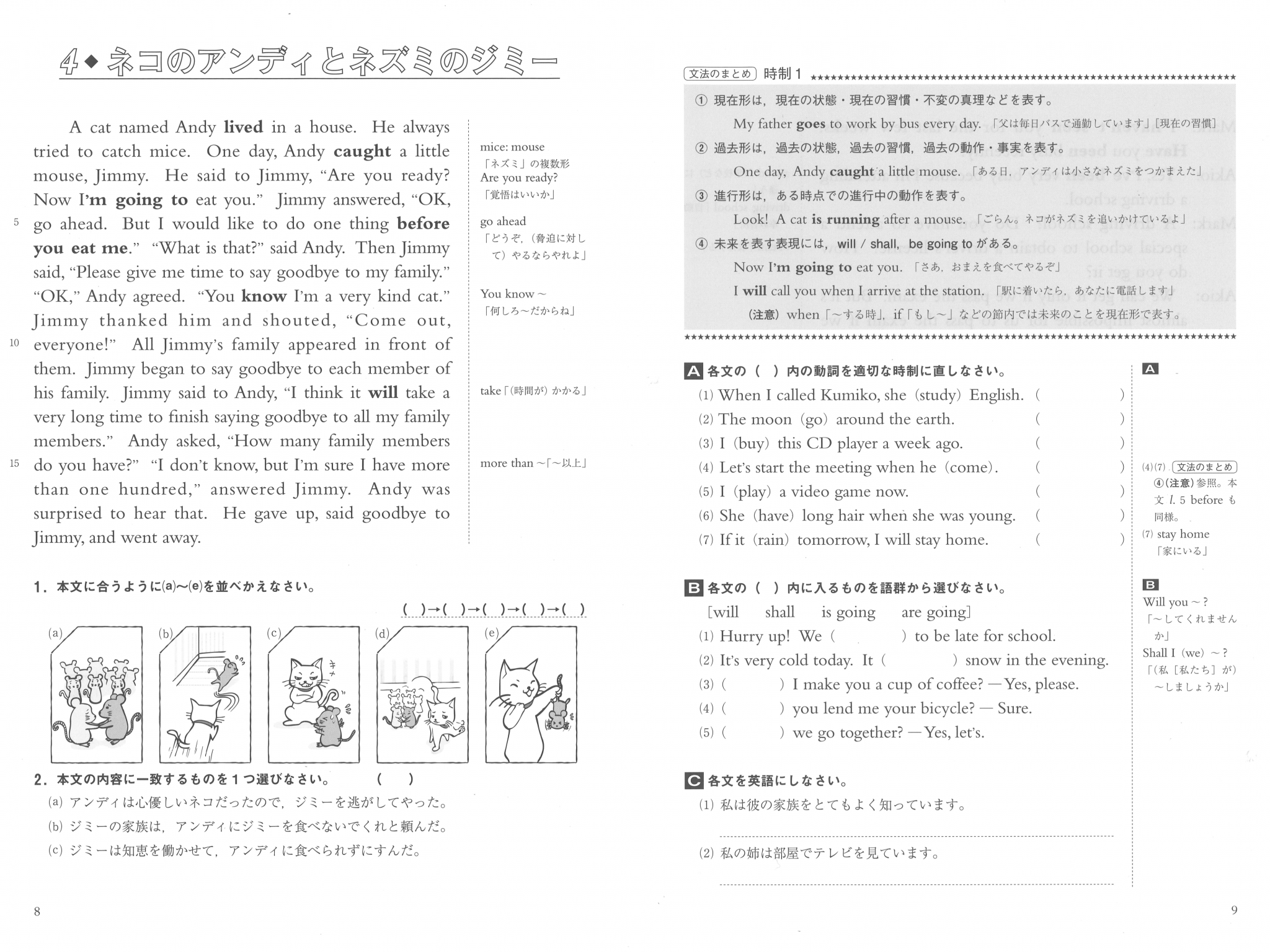 • 『速習英文法』と同範囲の文法事項。長文の語彙も中学レベル。