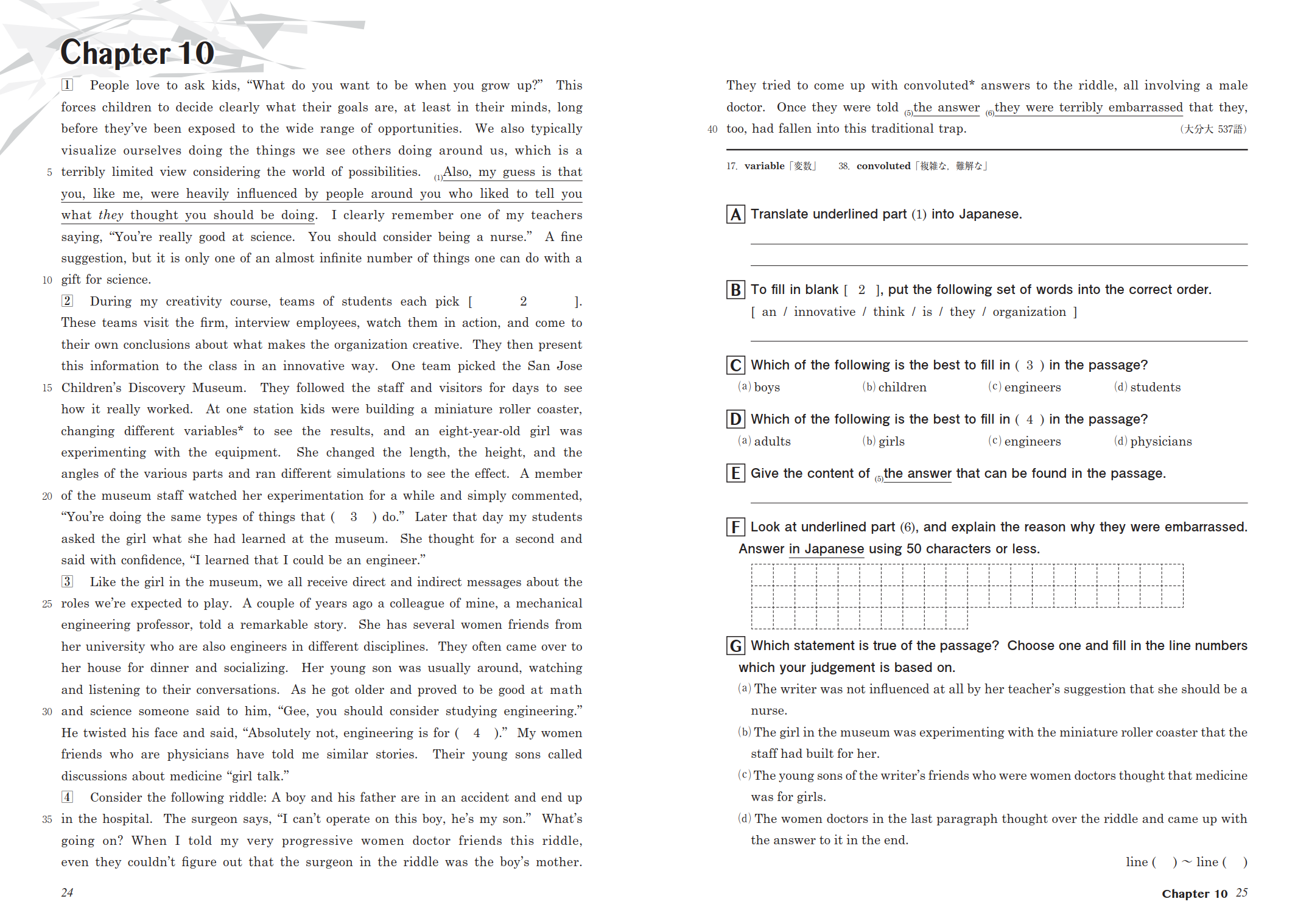- 和訳,内容理解,大意把握など多彩な問題で読解力アップ。