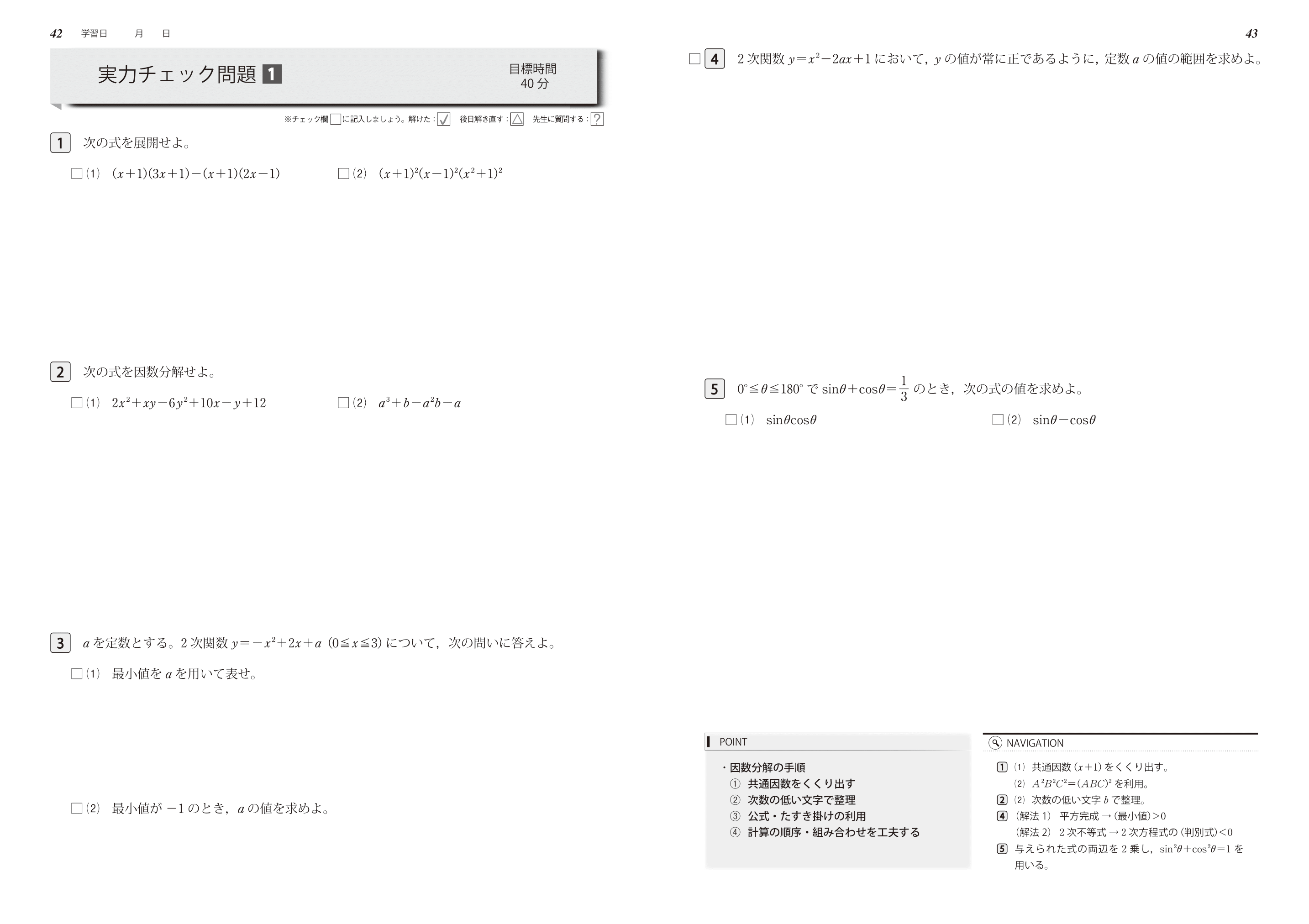 (A…数と式・2次関数,B…数と式・2次関数・図形と計量)