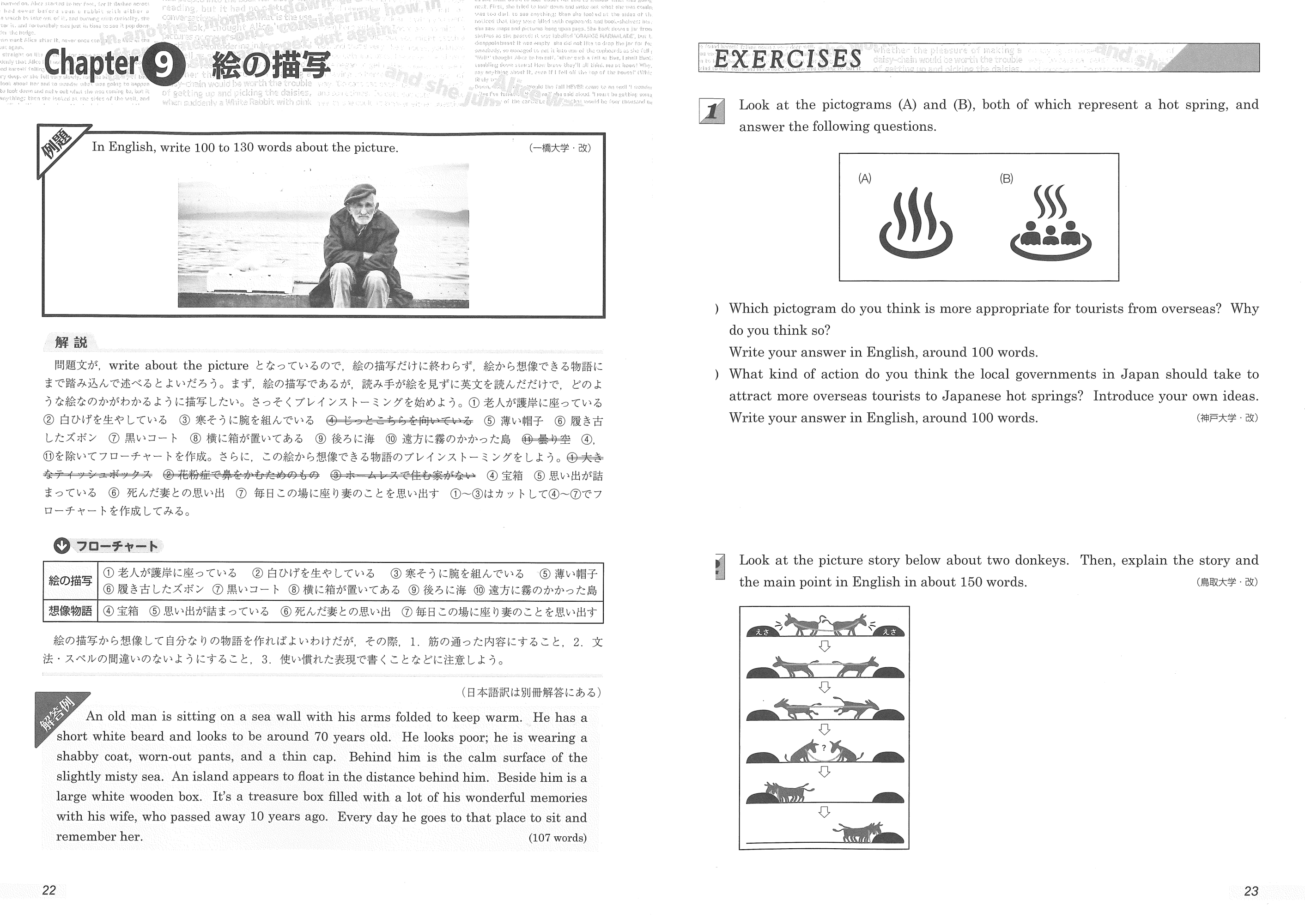 - 最新の大学入試の自由英作文問題を分析し,10のパターンに分類。それぞれのパターンでの作文の視点を示した。